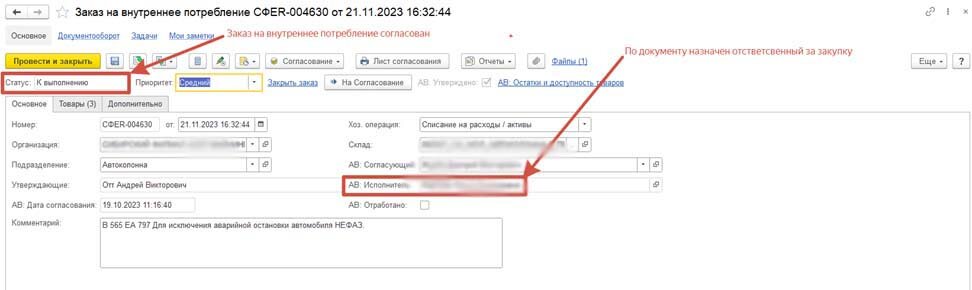 2. Согласование документа потребности по регламенту и назначение ответственных за выполнение закупки.