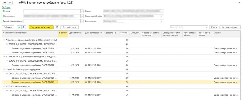 АРМ предназначен, в первую очередь, для обобщения и группировки документов с аналогичными потребностями по ТМЦ в разрезе Складов, Номенклатуры, Сроков поставки, что позволяет в результате анализа оформить единый заказ поставщику на ТМЦ, укрупнив партии закупки.