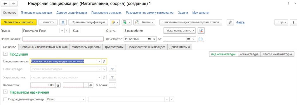 - Общая спецификация на уровне «Вида номенклатуры». Общую спецификацию можно присваивать виду номенклатуры, что дает возможность работать одновременно с большим количеством однородной номенклатуры.