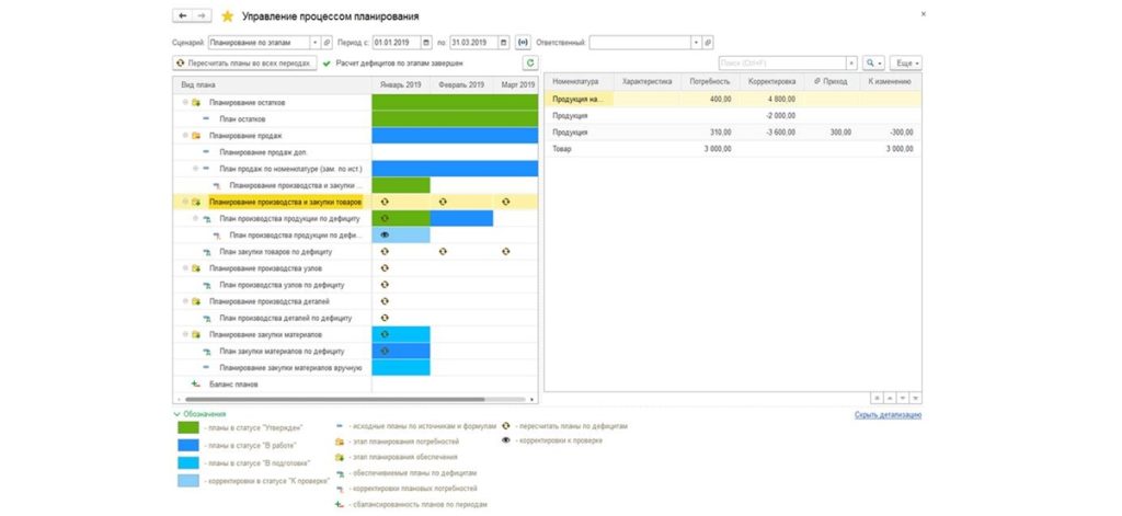 - Инструменты управления каскадным планированием, обеспечивающие согласование планов на различных стадиях производственного цикла.
