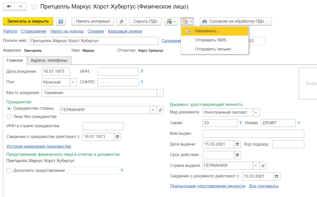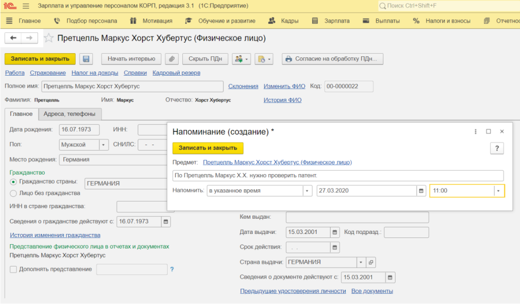 Инструкция по оформлению иностранца в 1С:ЗУП при приеме на работу